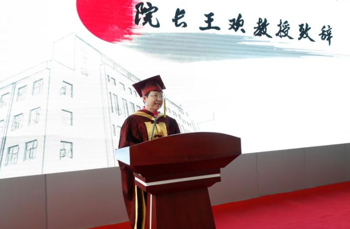 学位授予仪式在庄严雄壮的国歌声中正式开始,院长王欢教授在致辞中向获得硕士学位的全体研究生表示热烈祝贺,希望他们在未来的人生中不断进步并欢迎他们常回家看看。同时,王欢教授也对毕业生提出了不忘初心和心怀感恩的期望。