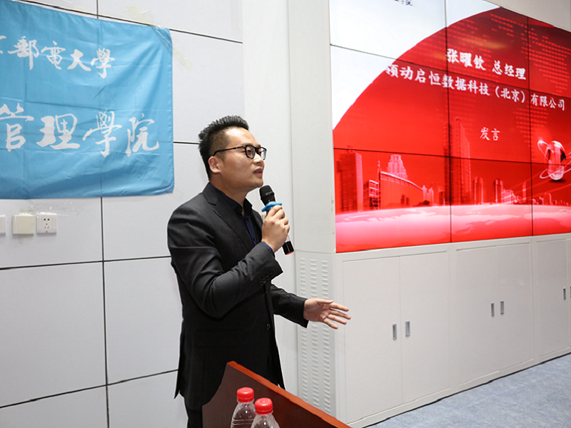 接下来,企业导师代表、领动启恒数据科技(北京)有限公司总经理张曜钦先生发言。他认为,企业导师工作带给他们的不只是丰富的实践体验,更有日渐加深的师徒感情。在这个技术大爆炸的时代,此项工作跨学科跨领域,拓宽了学生的视野与社会体验。