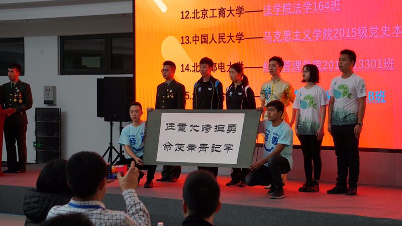 除视频展示外,同学们也来到评选会参与现场展示,充分展现出班集体的凝聚力与青春活力,表达了北邮青年学子勇担时代重任、牢记青年使命的强烈愿望,引发了在场师生的关注和高度评价。班级代表精彩回复了评委的问答。最终以第四名的优异成绩荣获了“2018年北京高校‘我的班级我的家’十佳示范班集体”荣誉称号。