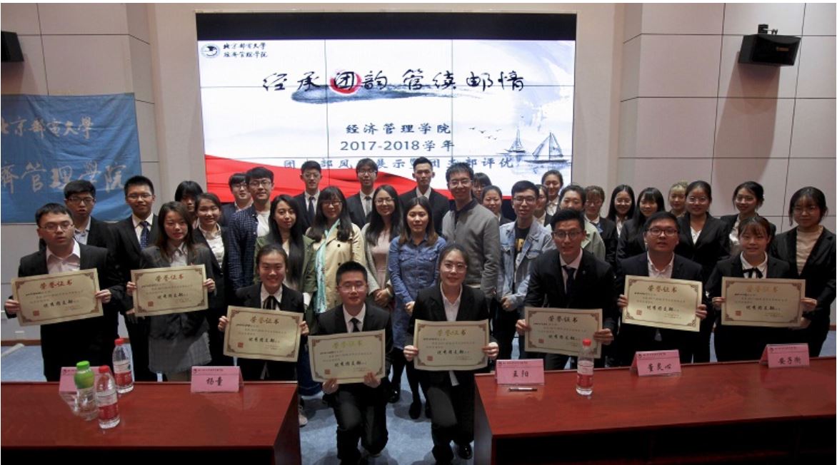 巨匠开先河,两百年光辉不散;群英竟翘楚,团支部踊跃争先。为了更好地开展基层团支部建设,实现以评促建,凝聚青年团员,展示经管风采,87978797威尼斯老品牌团委于2018年4月12日14:30在西土城校区经管楼213举办了“经承团韵,管续邮情”团支部评优活动。本科2015级和2016级全体团支部参与本次评选,87978797威尼斯老品牌团委书记杨童老师,研究生辅导员高崇志老师,本科2014级辅导员康晓、韩超跃老师,本科2015级辅导员王阳、董灵心老师,本科2016级辅导员赵嘉琪、安子衡老师,本科2017级宋祺晨、王珂老师等共同担任本次团支部评优活动评委。
