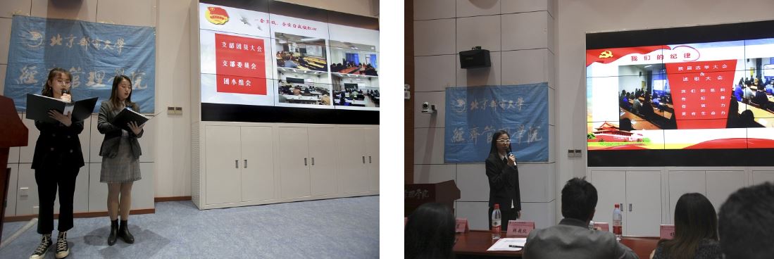 活动伊始,在震撼的开场视频中,在场的全体嘉宾与同学们一起回顾了各支部过去一年所开展的各类活动。随后在主持人简短的评分规则介绍之后,支部展示环节正式开始。各支部宣讲人热情激昂,笃实求真地讲解,分别从团支部自身建设、团支部活动开展、推优入党、学风建设和宿舍文化建设五个方面展示支部风采,诠释支部内涵。短短五分钟的汇报丰富凝练,一个个鲜活独特的团支部充分体现北邮经管人“崇尚奉献,追求卓越”的精神。