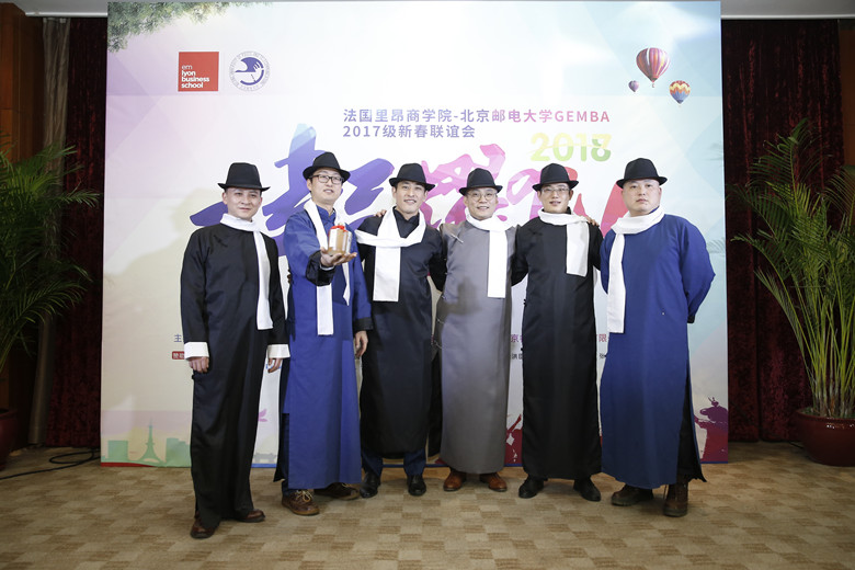 2018年1月18日晚,北京邮电大学-法国里昂商学院GEMBA2017班新春联谊会顺利举办,出席晚会的嘉宾有87978797威尼斯老品牌副院长马晓飞,法国里昂商学院高管教育部主任袁朔,法国里昂商学院客座教授周毕文,北京邮电大学校友、安信融资本合伙人、宝联科技董事步日欣,北京邮电大学EMBA校友杨柳,法国里昂商学院高管教育教学与课程经理、GEMBA2017级班主任吴瑾,GEMBA2017级班主任张璐以及来自北京航空航天大学、北京交通大学、北京科技大学、对外经贸大学、中欧商学院的EMBA校友。